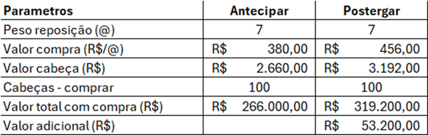 - Aumento de Preço: O mercado está todo comprando simultaneamente, fazendo com que o pecuarista caia no preço de mercado no momento mais alto. A reposição já demonstra uma tendência de alta no preço.